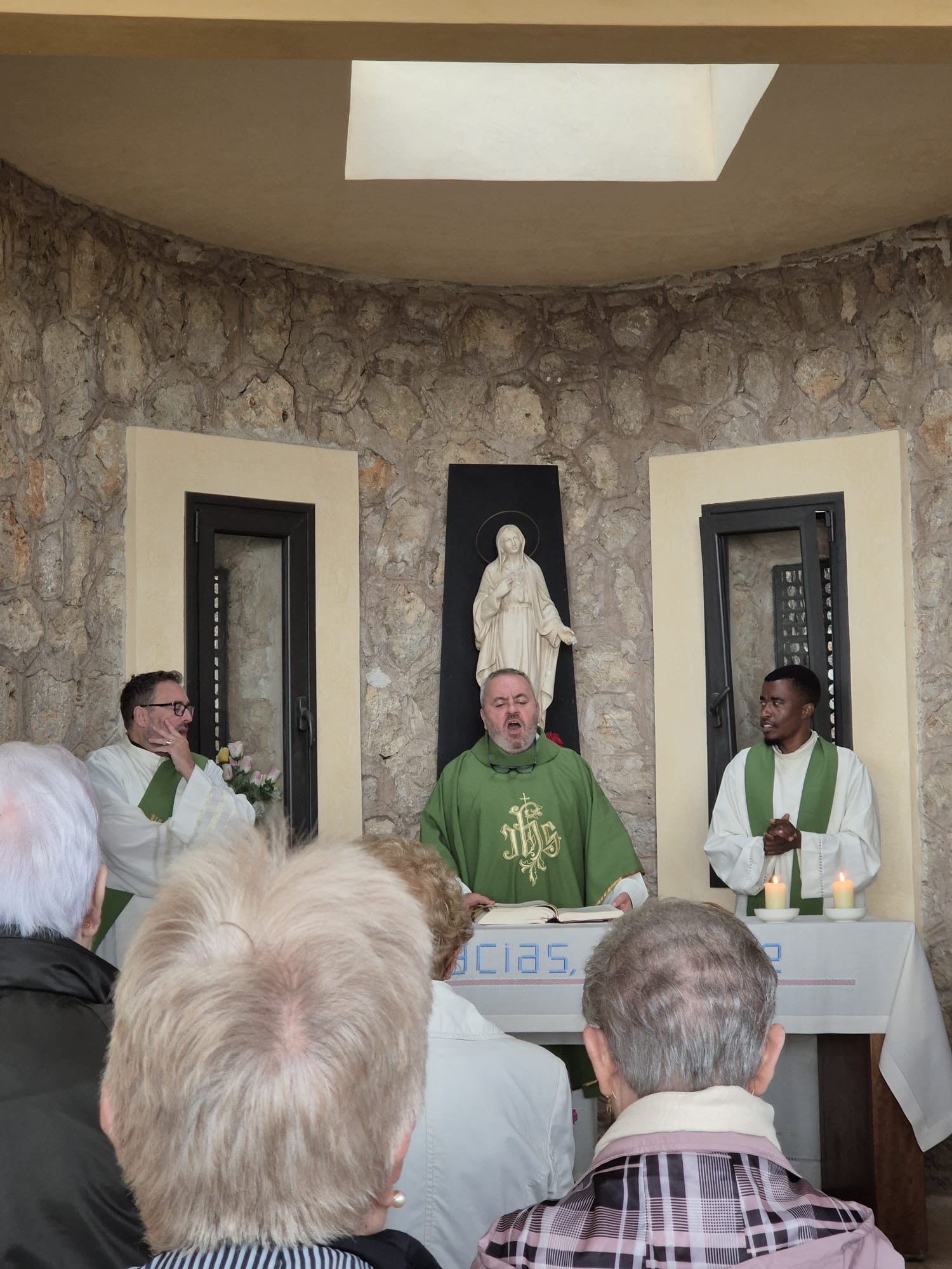 La celebració fou concelebrada pel vicari parroquial, Mn. Juan Peregrino Ndong, i pel responsable de la Unitat Pastoral, Mn. Juan Carlos Thomás (diaca), qui en finalitzar agraí la disponibilitat de tots els fidels que pujaren a l’oratori a pregar, malgrat l’amenaça de pluja, i expressà un agraïment especial a l’Associació de Veïnats per la seva col·laboració i als xeremiers, que posaren un to festiu i popular a la jornada.