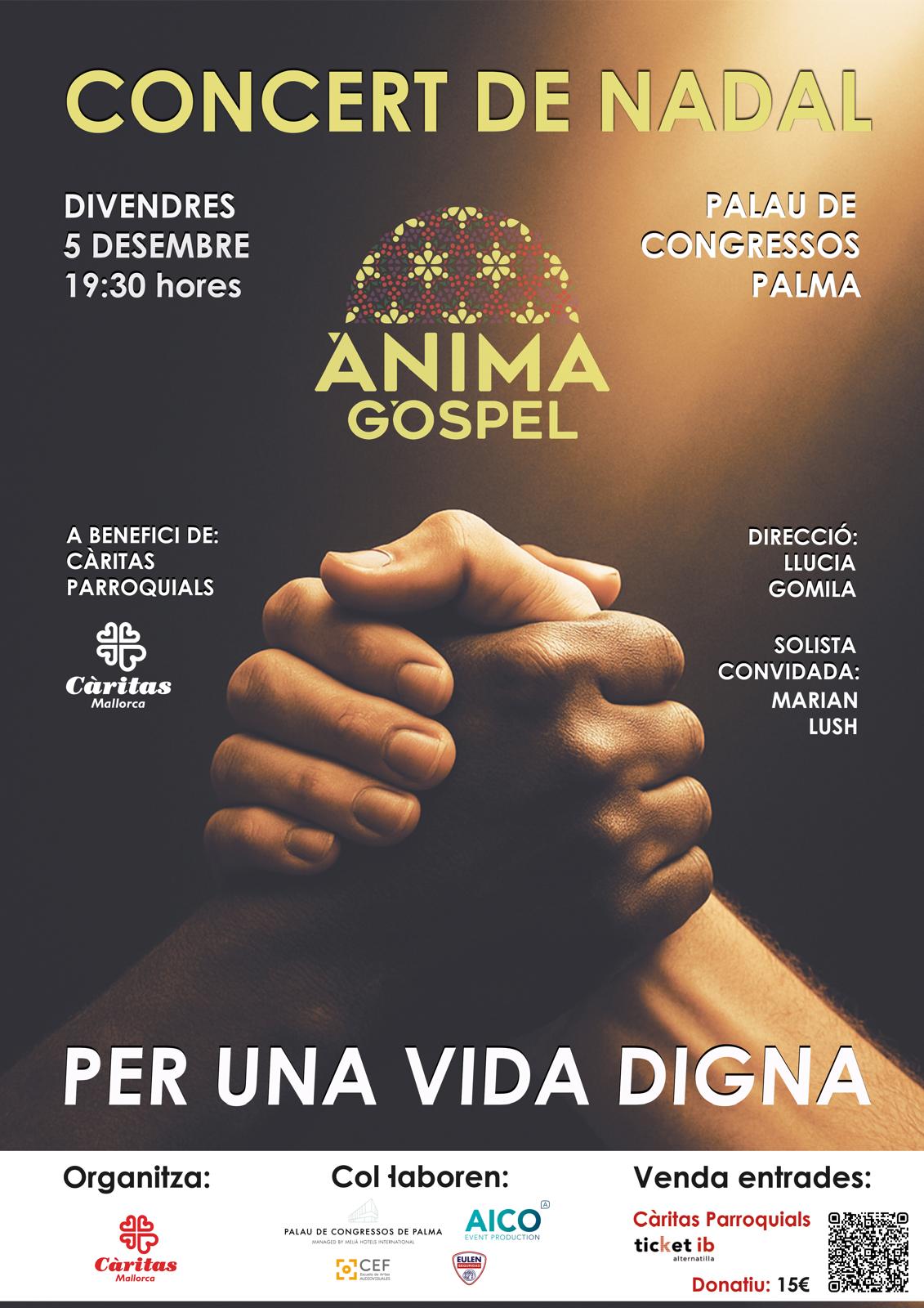 Sota el lema “Per una vida digna”, el Palau de Congressos de Palma serà l’escenari el pròxim 5 de desembre a partir de les 19.30h del concert de Nadal que ha organitzat Càritas Mallorca amb la presència del Cor Ànima Gospel.