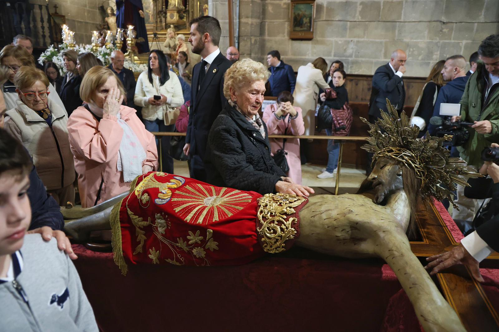 Un cop retornada la imatge a l’església, ha estat col·locada en posició horitzontal davant la nau central per a la seva veneració per part dels fidels.