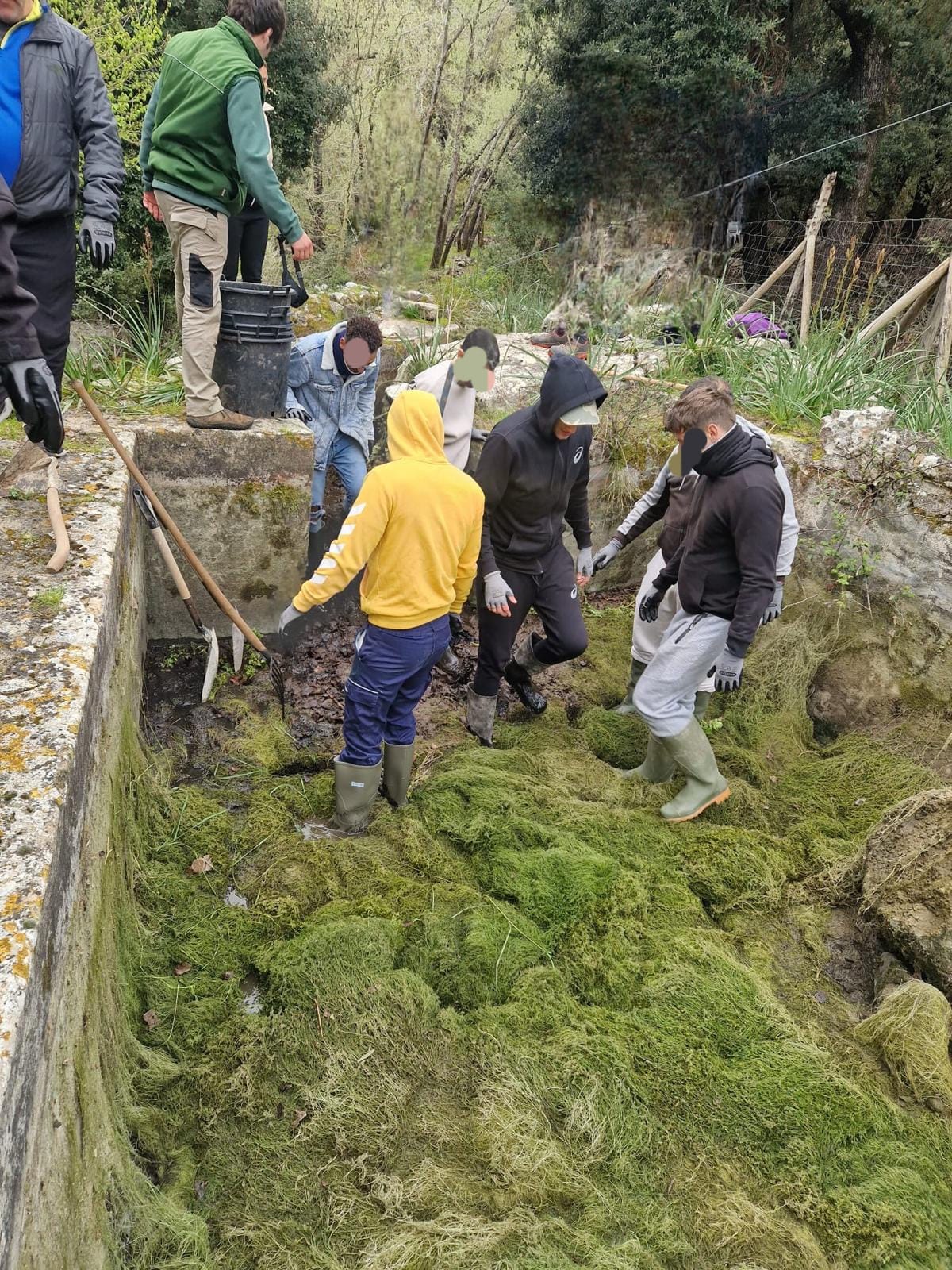 Així mateix, amb certa freqüència, un grup d’interns i internes del Centre Penitenciari de Palma, acompanyats d’un equip de voluntaris del Secretariat de Pastoral Penitenciària, també han trobat en el Santuari de Lluc un espai on oxigenar-s’hi, on poder-hi veure realitzat el seu anhel d’oferir serveis a la societat. Darrerament han tingut cura de netejar un dels safareigs que subministra aigua al Jardí Botànic.