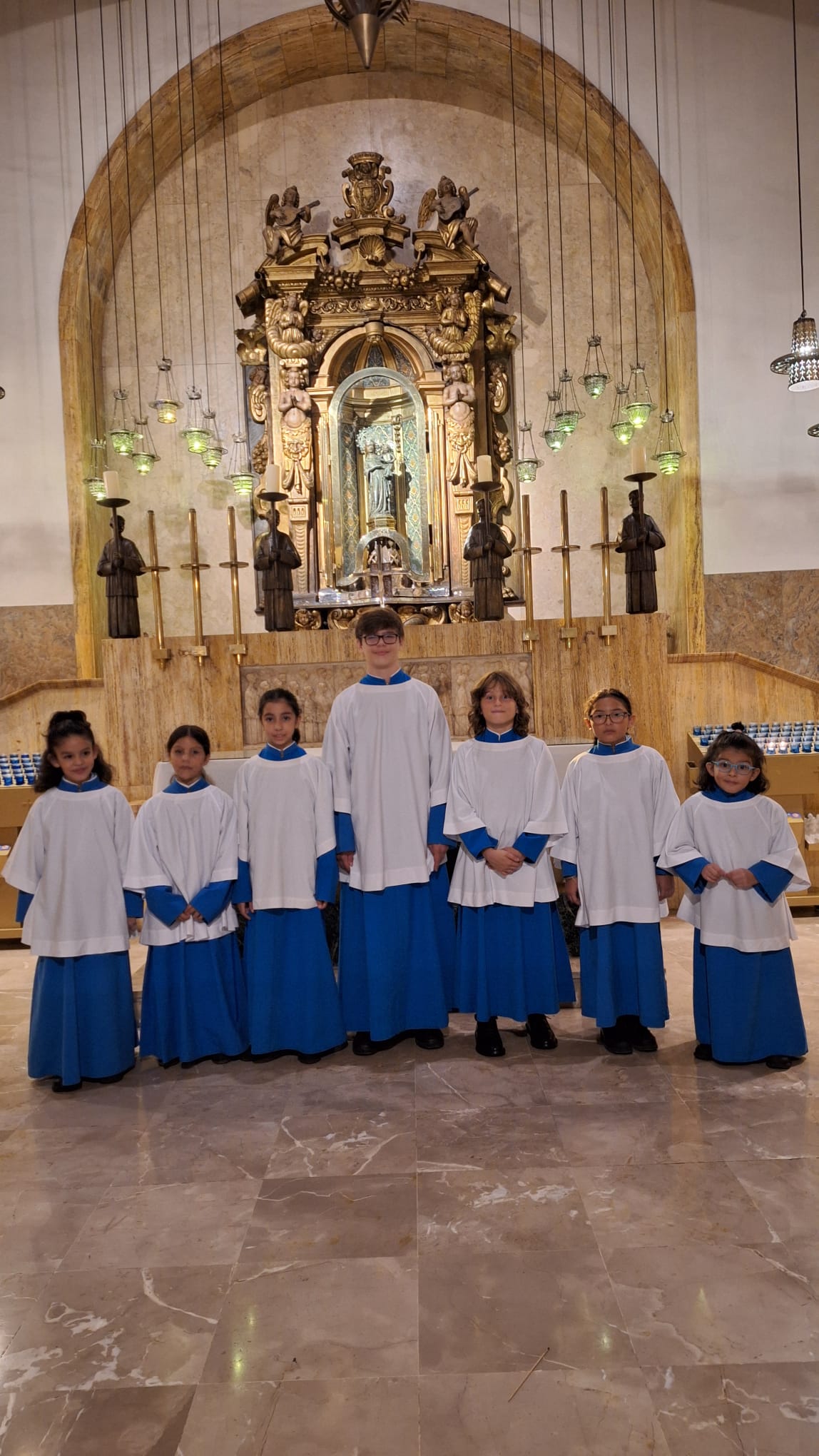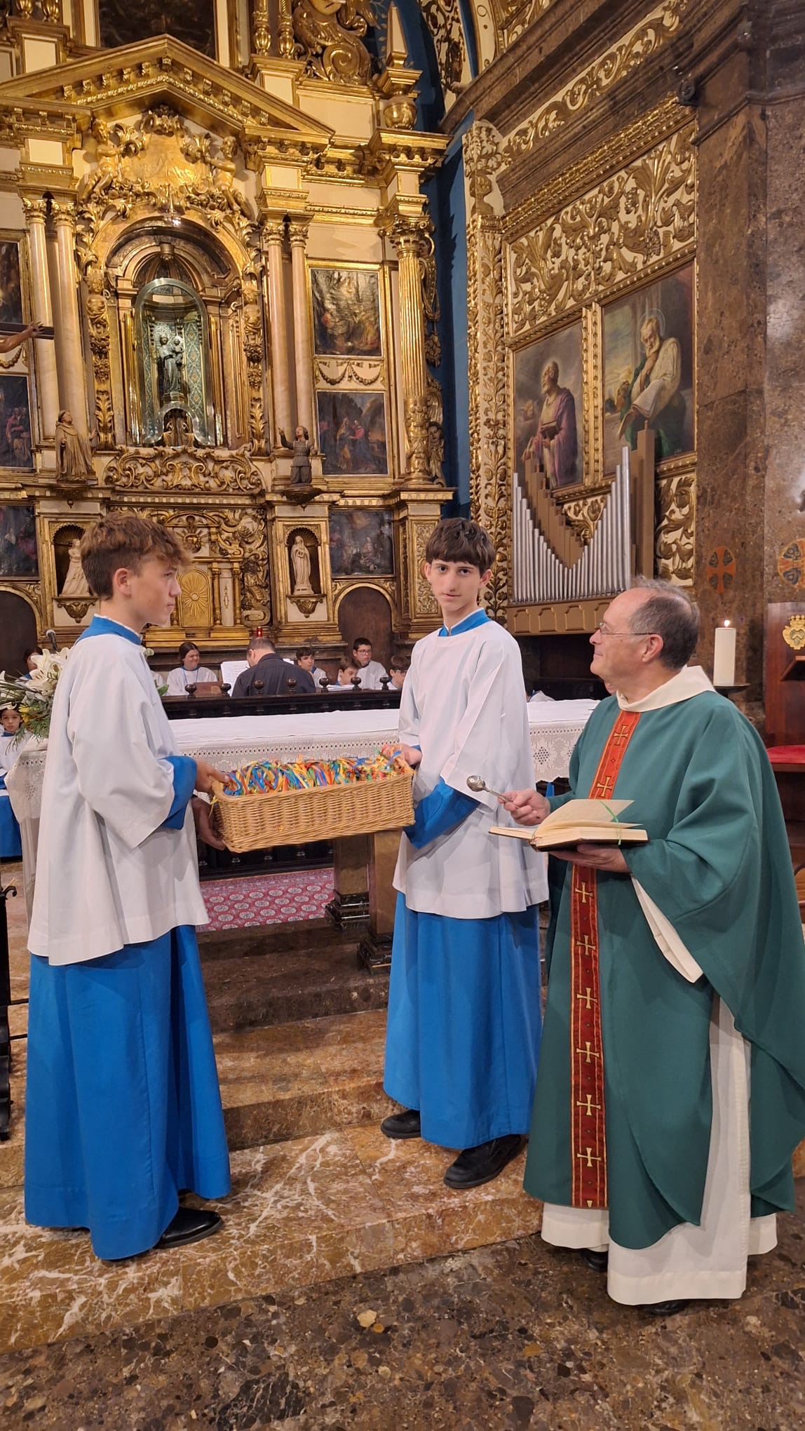 L’horabaixa del dissabte, en el transcurs de la missa de les 19.30h, es dugué a terme l’emotiu acte de vestició dels nous blauets i blauetes. Aquest curs s’incorporen fins a set infants procedents dels termes de Palma, Inca, Binissalem i Escorca, d’entre 6 i 14 anys. Sens dubte, el moment més colpidor d’aquest ritu tradicional de Lluc és quan les mares i els pares dels novells candidats vesteixen els seus fills amb la sotana blava i el roquet blanc que identifica els cantors i, com a senyal d’acollida, reben l’abraçada dels responsables de la formació. Llavors, també, s’acomiaden aquells altres que acaben la seva formació acadèmica i musical a l’escolania de la Santa Casa.