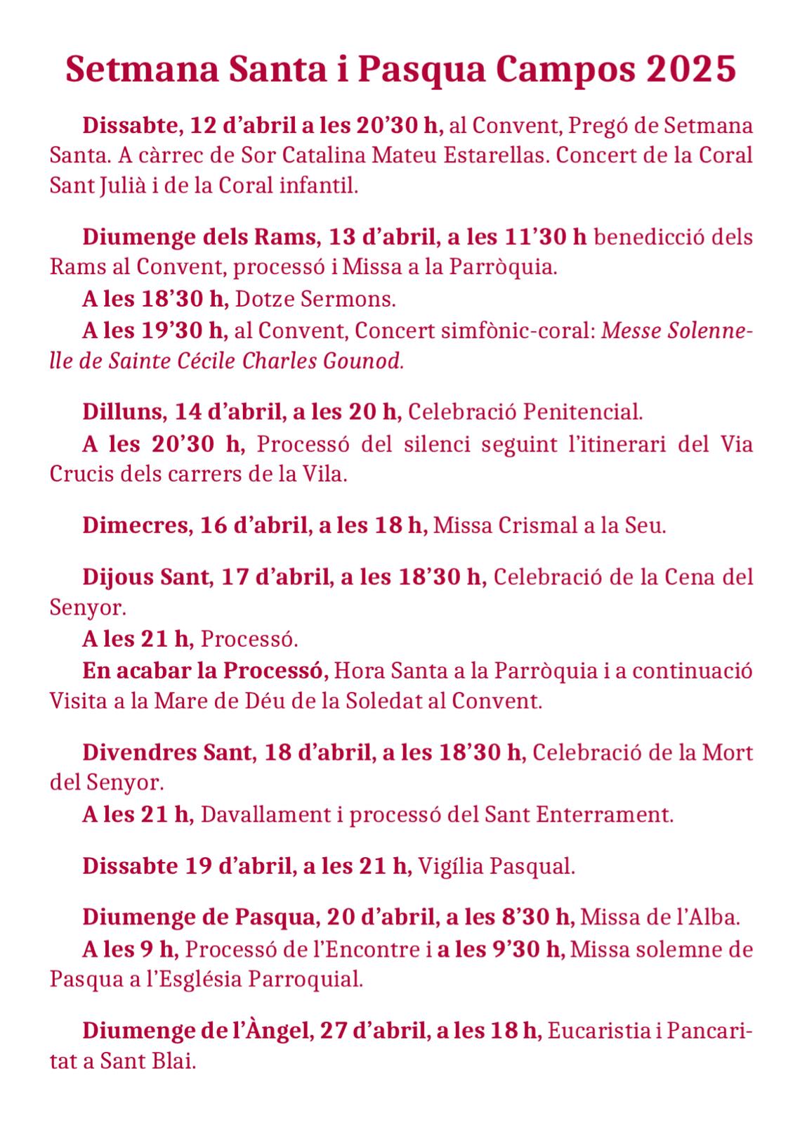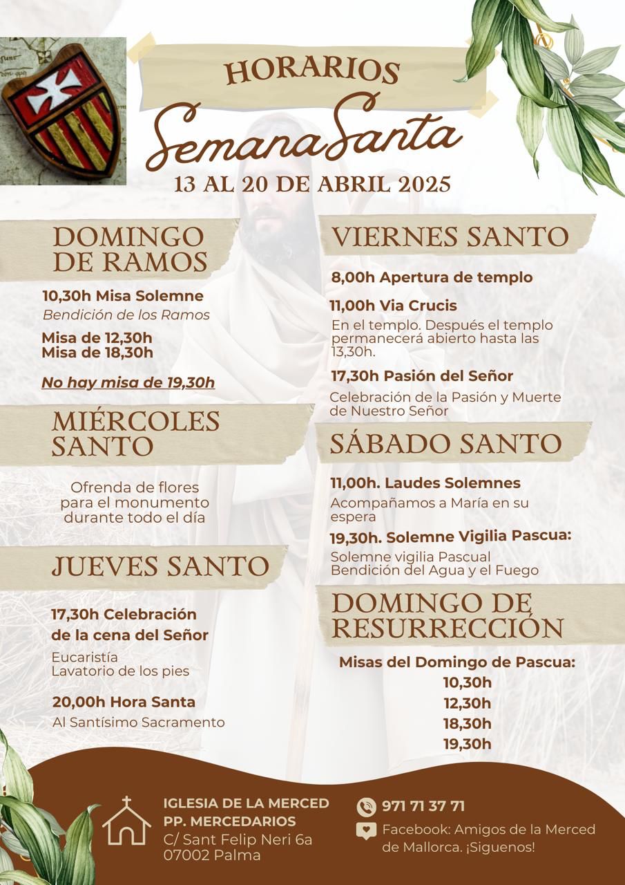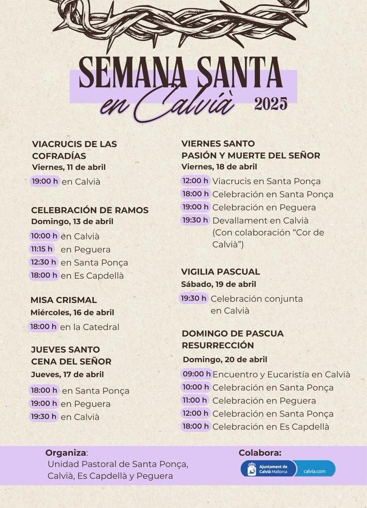 El Bisbat informa dels horaris de les celebracions de Setmana Santa d’enguany a Mallorca: