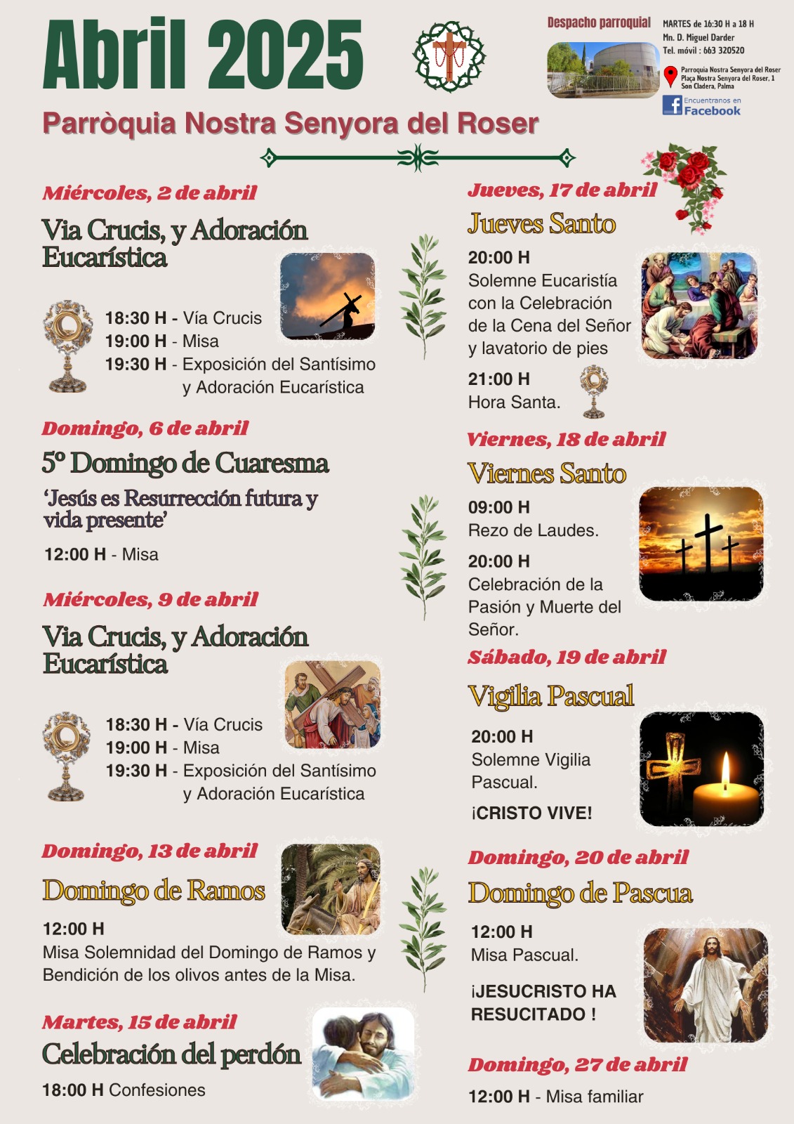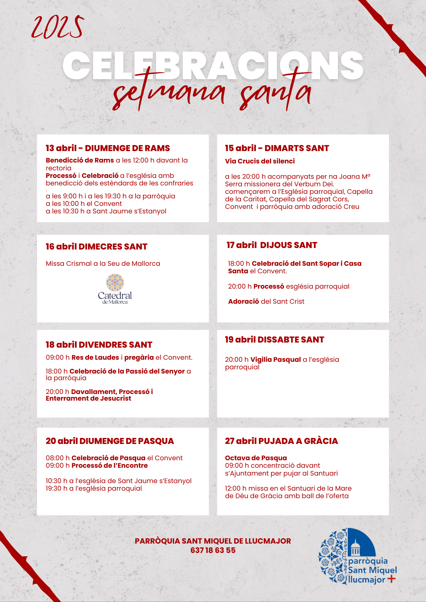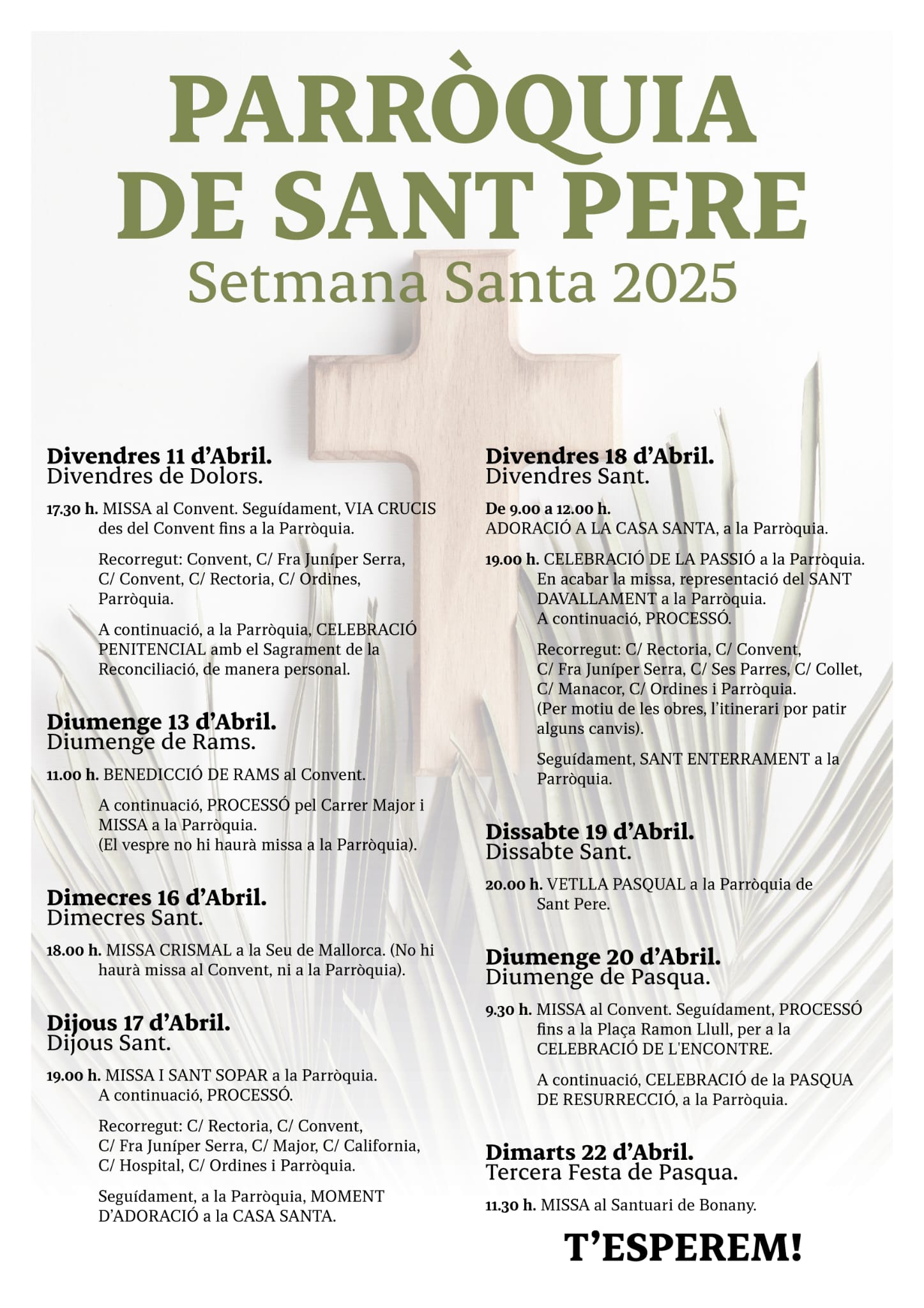 El Bisbat informa dels horaris de les celebracions de Setmana Santa d’enguany a Mallorca: