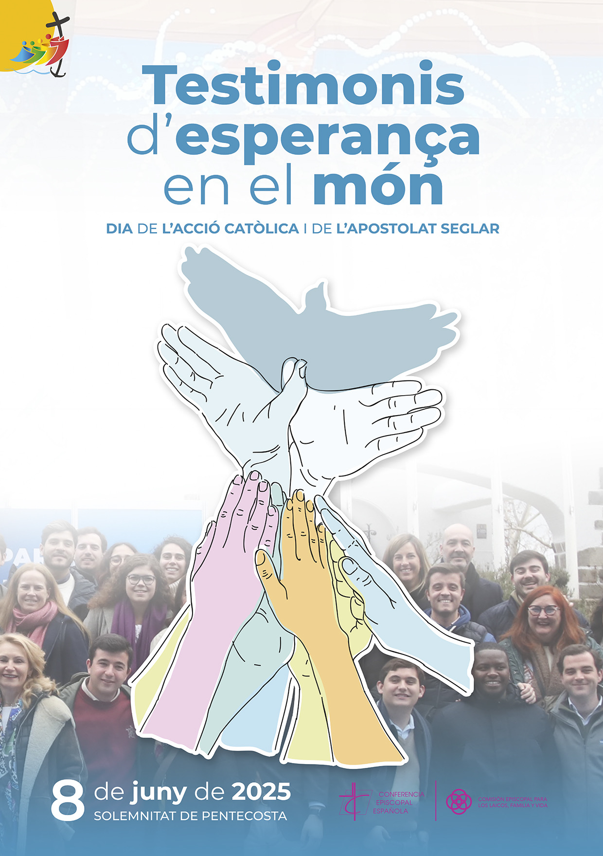 Aquest diumenge 8 de juny, coincidint amb la solemnitat de la Pentecosta, l’Església a Espanya commemora el Dia de l’Acció Catòlica i de l’Apostolat Seglar. La jornada, promoguda per la Comissió Episcopal per als Laics, la Família i la Vida, se celebra enguany amb el lema “Testimonis d’esperança en el món”, i s’emmarca dins l’Any Jubilar 2025.