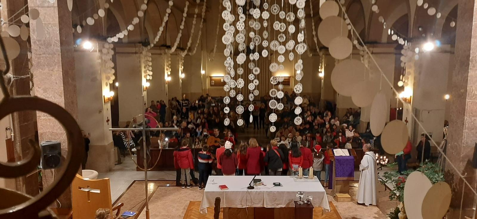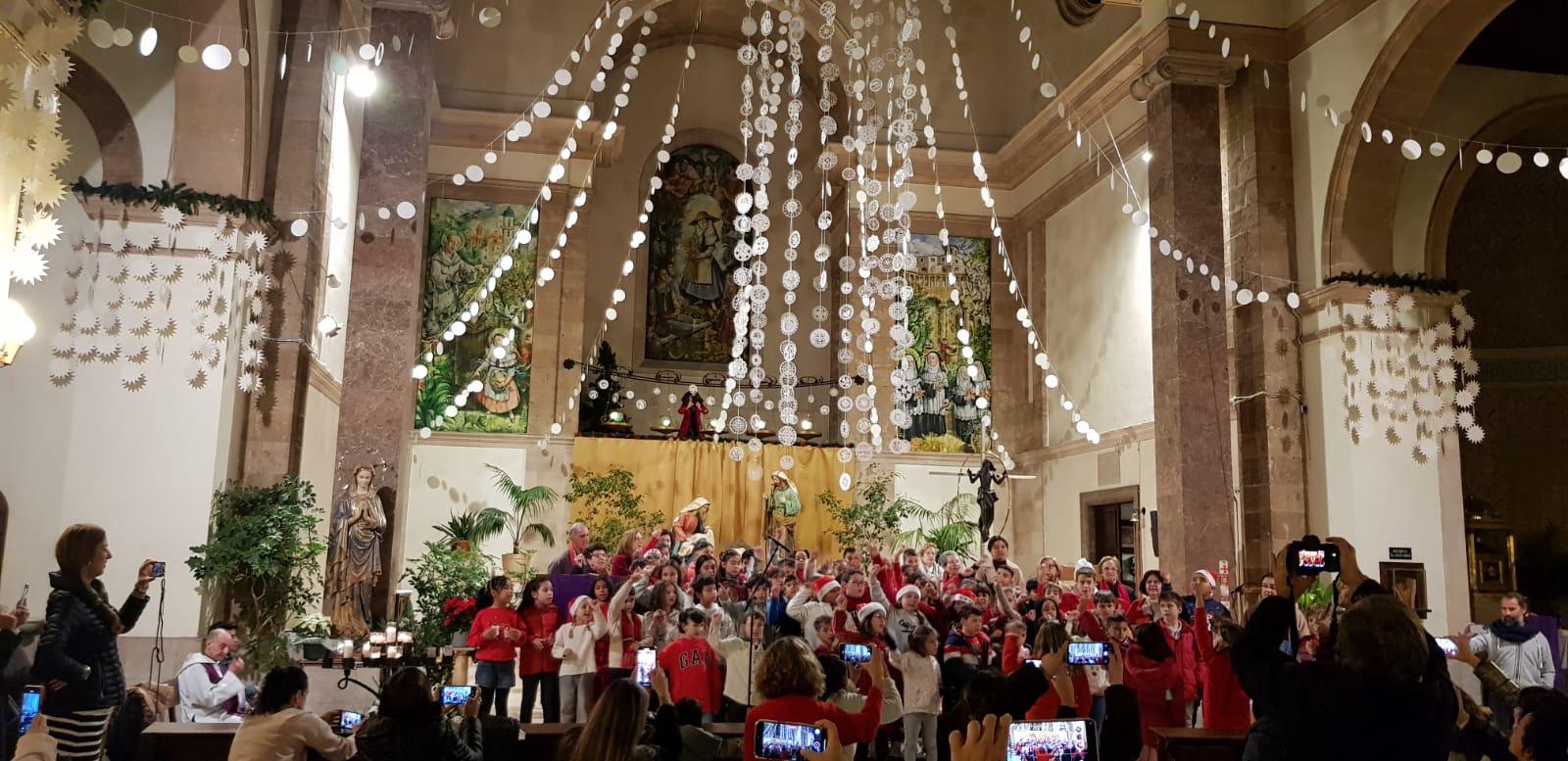Els petits havien duit les imatges del Nin Jesús dels seus betlems familiars i el rector, Mn. Ramon Lladó, amb una bella pregària les va beneir, aspergint-les després al llarg de tota l’església. Acabada la missa, que fou animada pel conjunt musical de la Moguda amb Jesús, els distints grups, entonaren nadales populars: els que venen a Catequesi el dimecres cantaren Pero mira como beben. Els del dijous i el dissabte, de la Catequesi de Famílies, interpretaren Campana sobre campana. Els que venen el divendres entonaren Les dotze van tocant. Per acabar, tots els grups junts varen cantar A vint- i-cinc de desembre, cançó a la qual s’uní tota la nombrosa assemblea Després de cada una de les interpretacions es varen sentir llargs aplaudiments. Tot plegat una vetlada entranyable encaminada a preparar la gran festa del naixement del Senyor.