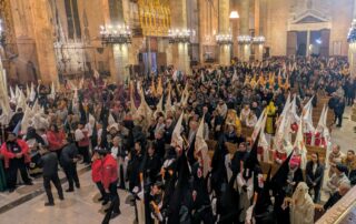 A partir de les 20.30 h del vespre de Dijous Sant, començaren a arribar a la Seu les primeres confraries que participaven en la processó, que havia sortit a les 19 h des del Santuari de l’Anunciació. Més de cinc mil confrares de 33 confraries, desfilant per ordre d’antiguitat, arribaren [...]