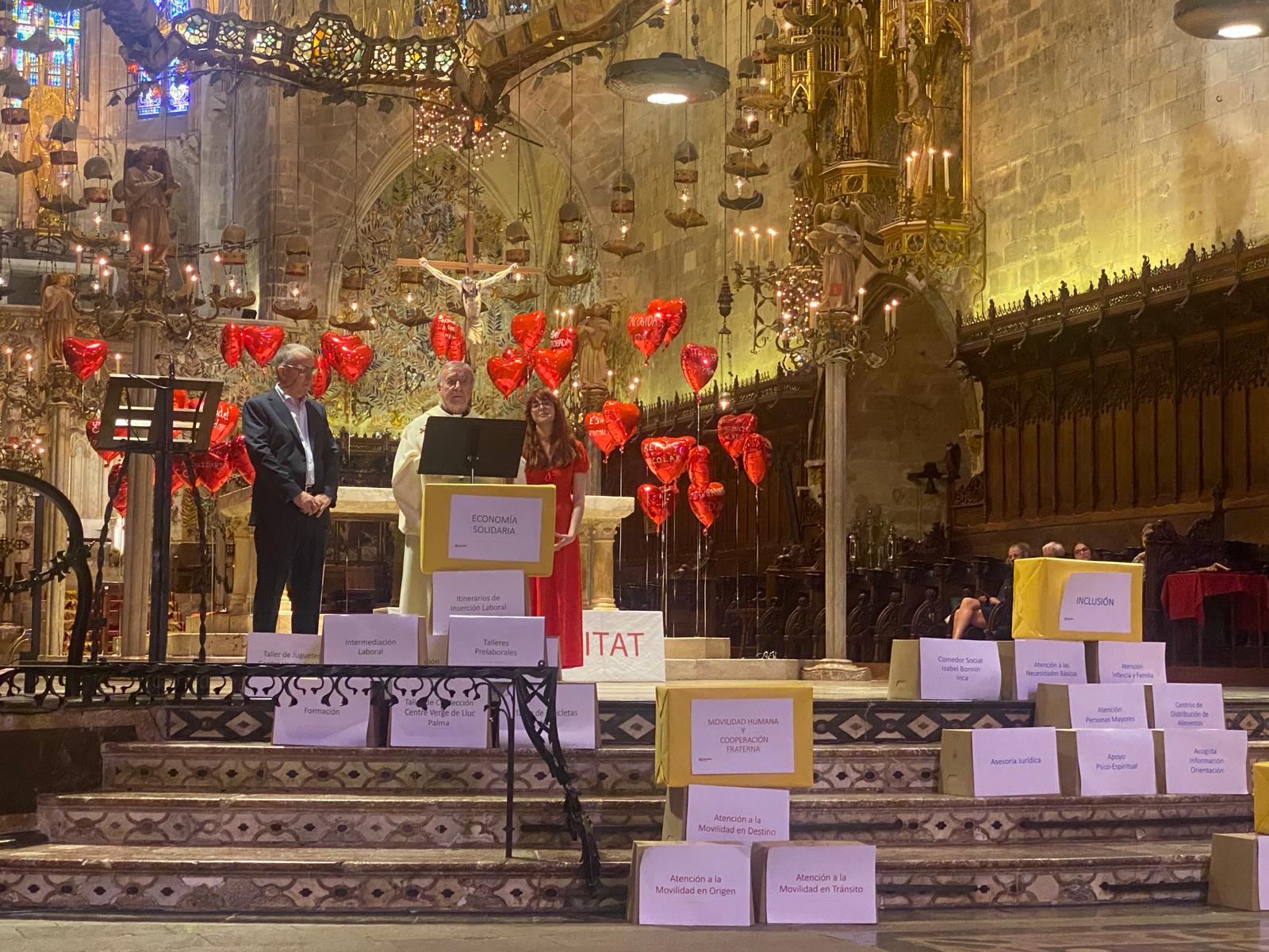 Més de 250 persones vinculades a l’entitat social —voluntaris, participants, socis, donants, treballadors, preveres…— es van donar cita a la Catedral de Mallorca per participar en l’acte, que va estar presidit per Mons. Bisbe Sebastià Taltavull, president de Càritas Mallorca, així com pel degà i president del Capítol de la Seu, Antoni Vera, i la secretària general de Càritas Española, Natalia Peiro, entre altres autoritats, com la consellera de Família i Afers Socials, Catalina Cirer.